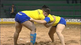 This backhold style is practiced in Sardinia and closely resembles Scottish and Cumberland backhold styles.