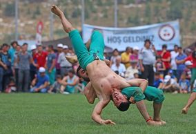 One of the two Turkish folk styles practiced nationwide and sanctioned by the Turkish Wrestling Federation. Karakucak competitions are held on grass fields. Competitors wear baggy trousers (şalvar) or special trousers named pırpıt made of canvas or other similarly sturdy fabric. Oiling the bodies and/or garments is strictly prohibited. Apart from this, Karakucak rules resemble Turkish oil wrestling rules. Among several local styles, Köprülü karakucak practised mainly in Çukurova has rules almost identical with freestyle wrestling.