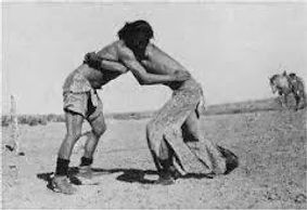 A native American Belt style where the grip is taken from the Breech belt. Breechcloth was the clothing that protected the lower part of the body. Breech as well as backhold was practiced by ever first nation tribe in central and north America. Native american wrestling was used to train the warriors of the tribe physically, mentally and spiritually. It also was to honor the great spirit, celebrate festivals and used as a medicine activity to heal the tribe. The Great creator loves to see his children at play so everyone in the community wrestled in order to commune with the spirits greater them themselves.