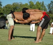 Native to Pakistan and India, it is an ancient Sindhi form of wrestling dating back 5000 years. The match begins with both wrestlers tying a twisted cloth around the opponent's waist. Each one then holds onto the opponent's waist cloth and tries to throw him to the ground. Malakhra is one of the favorite sports among males in Sindh, Pakistan and Gujarat, India, Malakhro matches are generally held on holidays and Fridays and are a feature of all fairs and festivals. Rich feudal lords and influential persons maintain famous Malhoo (wrestlers) and organize matches for them.